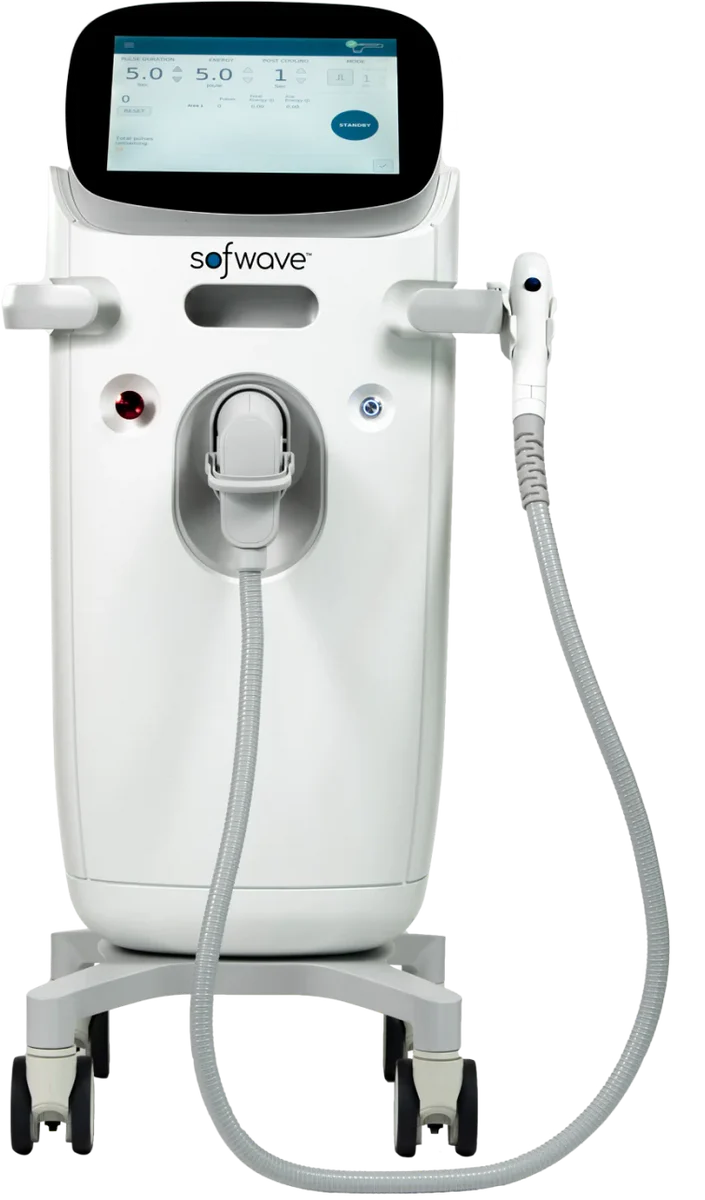 During a Sofwave session, a specialist uses a cutting-edge handheld device that delivers synchronous ultrasound parallel beam technology to the treatment site.